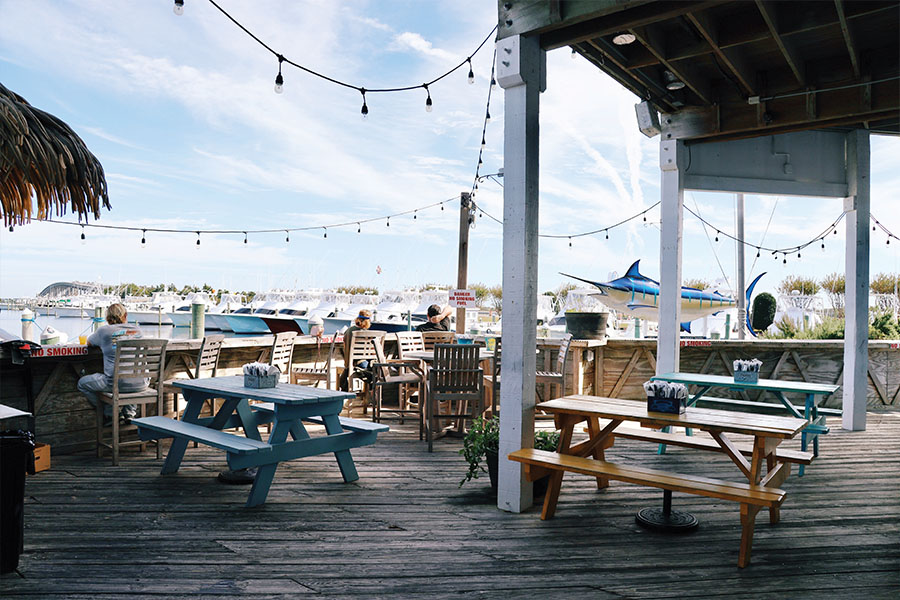 Dock-and-dine spots are Dock-and-dine spots are Outer Banks boating destinations. Outer Banks boating destinations. Whether you’re chasing a water-Whether you’re chasing a water front sunset dinner or grabbing front sunset dinner or grabbing something casual before heading something casual before heading back out to fish, short-term dock back out to fish, short-term dock access for a boat-up meal adds a access for a boat-up meal adds a little sparkle to the day.