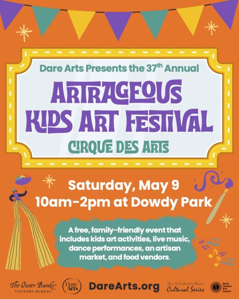 Proceeds from Artrageous benefit Dare Arts' cultural arts programming and the Artrageous Youth Scholarship Fund, which awards awards a scholarship to a Dare County high school senior intending to study fine art or the performing arts in college.