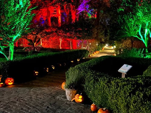 Stroll among the pumpkin-lighted paths of The Elizabethan Gardens.