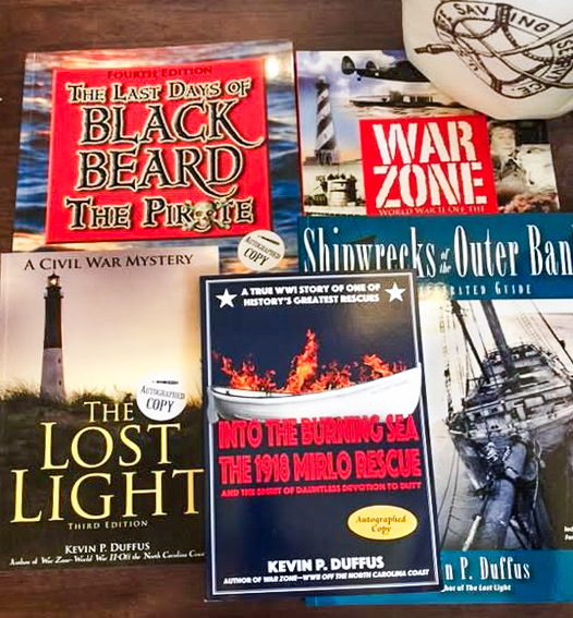 Anything by Kevin Duffus. Duffus is the author of nine books on Outer Banks history. While we wait for his new book, Outer Banks History: The Inventor Reginald Fessenden and the Origins of American Radio on North Carolina’s Outer Banks (2026), a deeply researched story of Reginald Fessenden, who in 1901 and 1902, pioneered experiments in wireless technology on the Outer Banks, leading to radio broadcasting, television, radar, sonar, and WiFi. All of Duffus's titles are must-reads, including Shipwrecks of the Outer Banks, War Zone, The Last Days of Black Beard the Pirate, The Lost Light, A Civil War Mystery, Into the Burning Sea: The 1918 Mirlo Rescue, and more.
