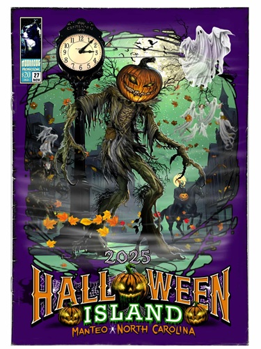 Halloween Island officially kicks off at Downtown Manteo's First Friday monthly street party on October 3. Making a dramatic return is Halloween Island’s mischievous mascot, Halloween Jack, who rises from the marshes of Shallowbag Bay each year to haunt the town. A sneak peek to Halloween Island happens on October 2 at the premiere of the Halloween International Film Festival. Held at The Pioneer Theater, the Film Festival event will be offering 2025 Halloween Island t-shirts and passports for sale early.