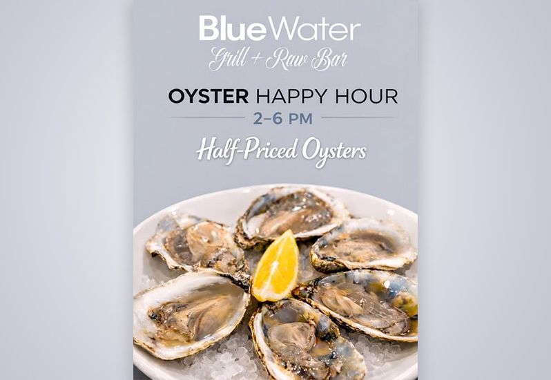 Half-Priced Oysters from 2–6 PM, Thursday through Sunday.