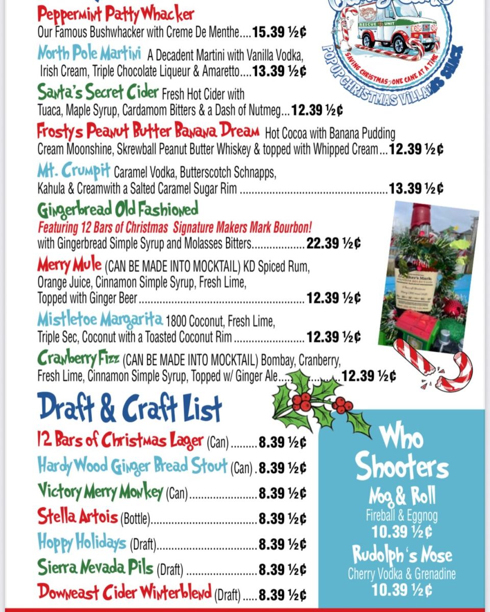 Bah Humbug! Bonzer Shack is now your favorite Christmas Villain's Hangout all month long! The Shack has transformed into The Broken Candy Cane. Join us for tons of Christmas cheer and holiday decor along with Christmas-inspired food, festive cocktails for adults and (non-alcoholic) cocktails for kids! Come check us out from Wednesday-Sunday for lunch, dinner, and a jolly good time! May your hearts grow three sizes at The Broken Candy Cane!