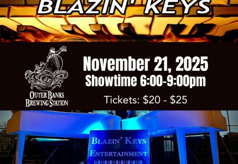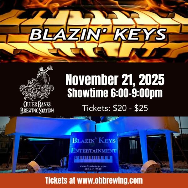 Join us for an unforgettable night of music and entertainment with Blazin’ Keys Dueling Pianos at the Outer Banks Brewing Station on Friday, November 21, 2025. The high-energy performance will feature two talented pianists going head-to-head, playing your favorite hits, and taking requests for an interactive and fun experience!