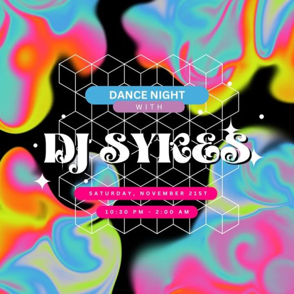 Mark your calendars for DJ Sykes on Friday, November 21, from 10:30 PM to 2:00 AM! 🎧🔥 It’s going to be a night of heavy-hitting tracks, high energy, and nonstop dancing. Whether you're rolling in with your crew or flying solo, this is the move. Don’t miss it! 💃🕺