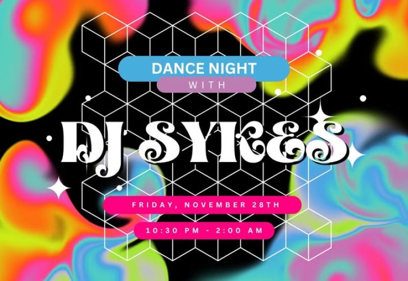 Keep the holiday weekend going with DJ Sykes live on Friday, November 28, from 10:30 PM to 2:00 AM! 🎶🔥 Whether you're recovering from the feast or ready to dance off the leftovers, this night is for you. Expect high energy, great music, and a packed dance floor. Let’s make it a night to remember! 💃🕺