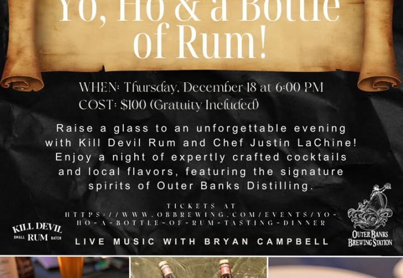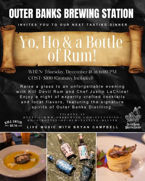 Enjoy a night of expertly crafted cocktails and local flavors, featuring the signature spirits of Outer Banks Distilling. Join us on December 18th for our 3rd Tasting Dinner of the year, starting at 6pm!