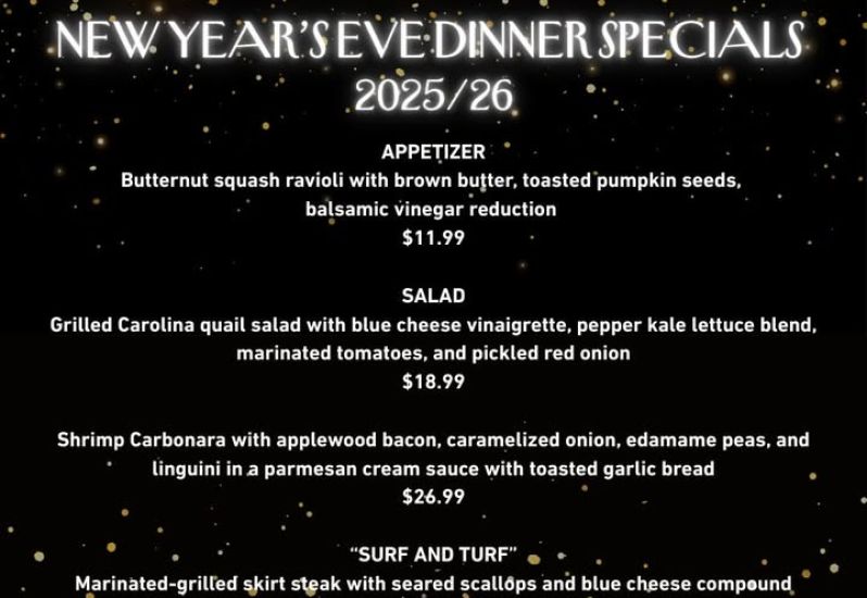 We still have spots open for our New Year's Eve Dinner. Please call the restaurant at (252) 449-2739 to make a reservation. Let's end 2025 together with good food and good cheer, and... See More