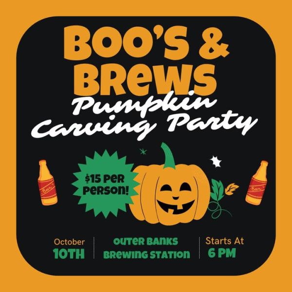 Join us for the Pubkin Patch Boo's and Brews Pumpkin Carving Party on October 10th at the Outer Banks Brewing Station Backyard!๐