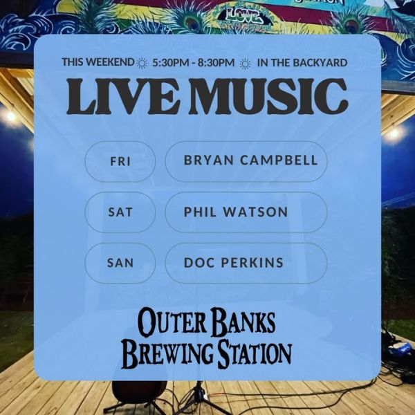 Here is the live music line up for this weekend! Come listen to live music Friday through Sunday from 5:30 to 8:30 pm in the backyard. Check out the schedule below! #livemusic #outerbanksnc #brewingstation