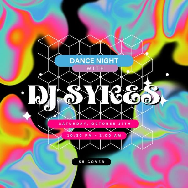 Kick off your weekend right this Friday, October 17th with DJ Sykes bringing the heat all night long! π§π₯ The party starts at 10:30 PM and keeps going until 2:00 AM β all for just a $5 cover. Donβt miss the beats, the energy, and the vibes. See you on the dance floor! ππΊ #DJSykes #FridayNightVibes