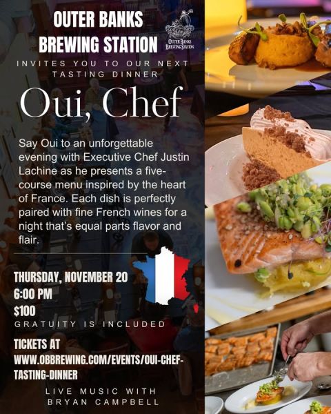 Join us for our next Tasting Dinner: Oui, Chef! Experience 5 courses of exquisite French cuisine dishes and pairings by 2025's "Best Chef" award-winner, Chef Justin Lachine, at the Brewing Station as part of our Tasting Dinner Series!