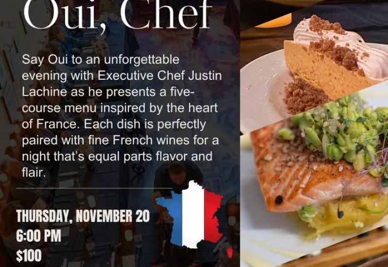 Say Oui to an unforgettable evening with Executive Chef Justin Lachine as he presents a five-course menu inspired by the heart of France. Each dish is perfectly paired with fine French wines for a night that’s equal parts flavor and flair, accompanied by the musical stylings of Bryan Campbell. Tickets are $100 per person; gratuity is included in the ticket price. Join us on Thursday, November 20th, for a one-of-a-kind culinary adventure!