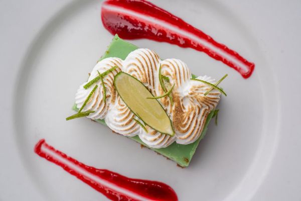 πKey lime and coconut bar with a Biscoff crust topped with toasted meringue.