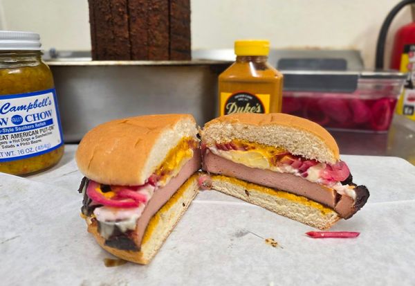 Come by and see what we’re serving up—this past few days we were whipping up smoked fried bologna sandwiches stacked with smoked cheese, red pickled onions, chipotle mustard, and a little chow chow if you want it. You never know what tasty surprise might be next!