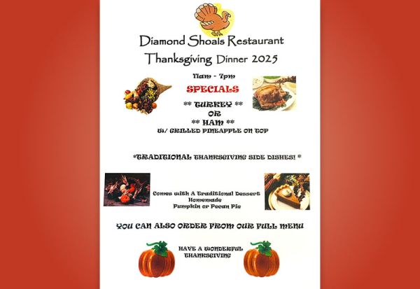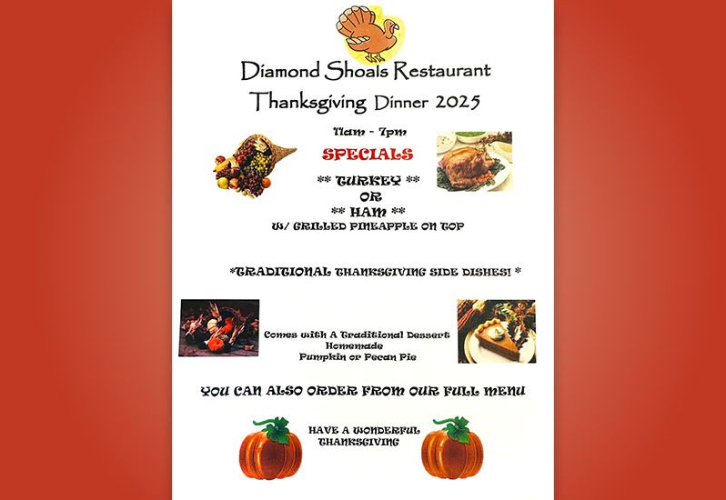 Leave the Thanksgiving cooking to us! 🦃 Join us from 11 a.m. to 7 p.m. for your choice of Turkey or Ham topped with grilled pineapple, served with all the traditional sides. Each meal includes your choice of pumpkin or pecan pie for dessert. Craving one of your regular menu favorites instead? We’ve got you covered—our full menu will also be available. 🎃 Reservations are encouraged—call (252) 995-5217 to save your spot!