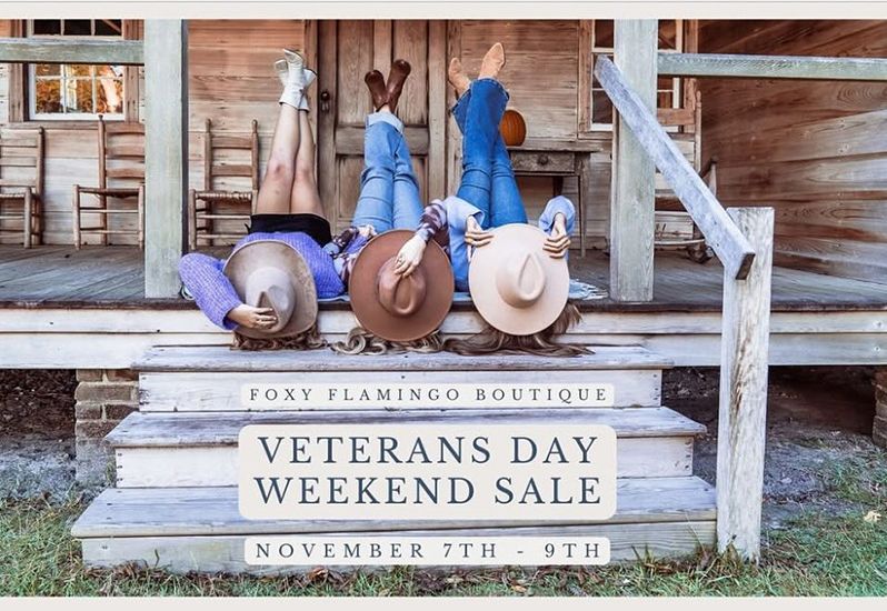 Join us for our special Veterans Day Weekend Sale on November 7th - 9th, where you can enjoy incredible savings! This is the perfect opportunity to grab those items you've been eyeing at unbeatable prices. Show your appreciation for our veterans by supporting and shopping during this exclusive event. Don't miss out on these fantastic savings; mark your calendar today!