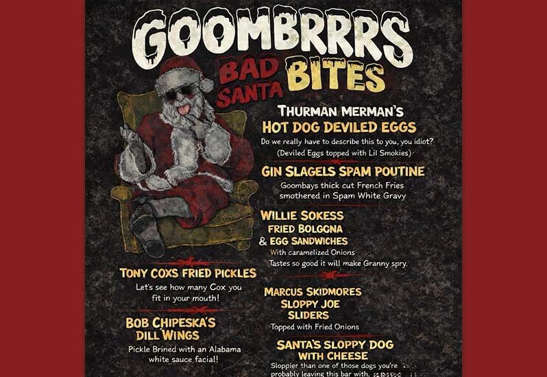 Come eat like Santa’s on the naughty list. Only at Goombrrrs tonight. Doors open at 4:30pm and music starts at 7:00pm.