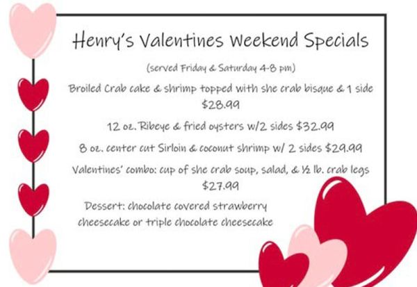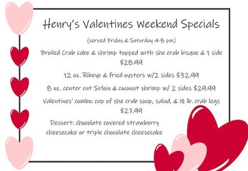 February 12 at 4:06pmStop by for Valentine's Day specials this weekend! 🩷❤️ Stop by for Valentine's Day specials this weekend! 🩷❤️ Stop by for Valentine's Day specials this weekend! 🩷❤️ Visit Our WebsiteClick here for more posts from Henry's RestaurantHenry's Restaurant 3396 N Croatan HwyKill Devil Hills(252) 261-2025Website DirectionsCall us