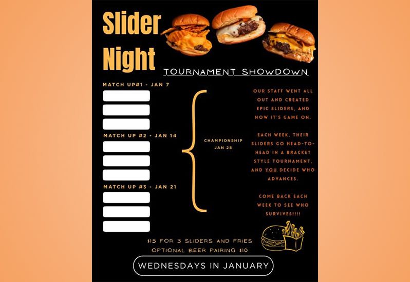 We will be hosting a weekly slider night every Wednesday this month! 6pm!!! Our staff will be hand-selecting a different global region each week to inspire our featured sliders. Menu coming soon. Be the judge and help us decide which sliders make it to the championship!! ππ