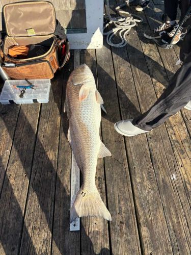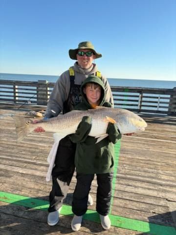 Big 'ole bull -- David Castleman and his son just caught and released this big, healthy RED DRUM off the end of the pier! Anglers are also catching GRAY TROUT and SAND PERCH.