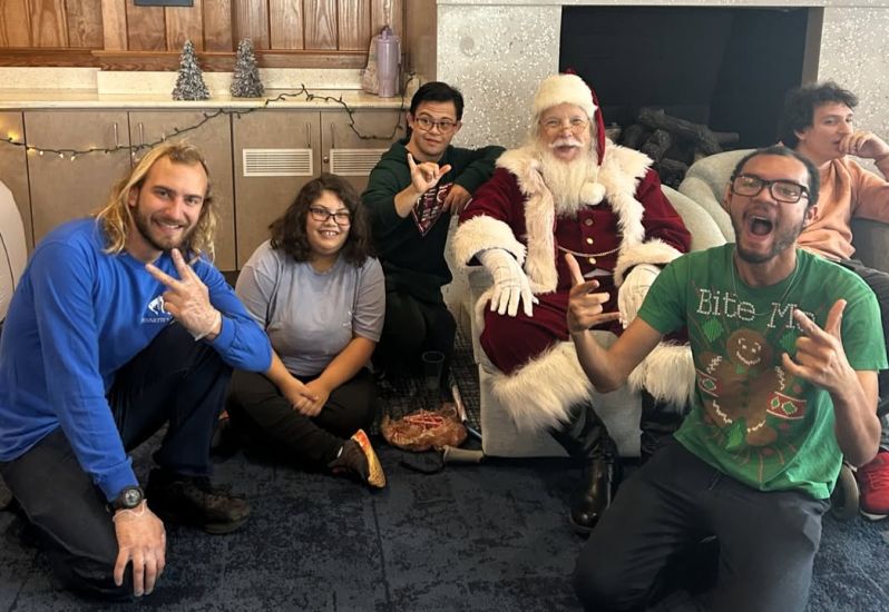 Happy Holidays -- Fishing instructor Dustin Sink, left, hangs with the cool kids at our Holiday Celebration with Friends last week. Also pictured, from left, is Seth, Haley, Brayden "Bboi," Santa and Damien. #happyholidays #merrychristmas