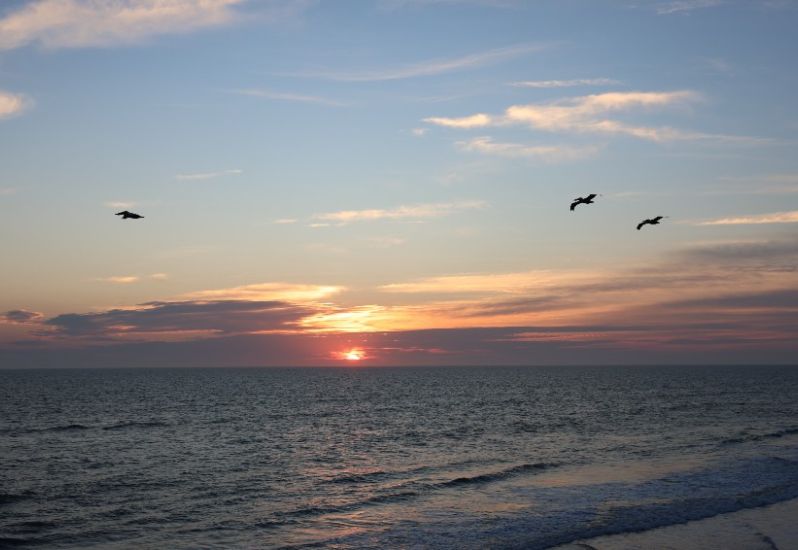 Day Break -- A beautiful sunrise this morning! There's a moderate NE breeze blowing in from the ocean at 13 knots. Ocean temp 51 degrees, air temp 52 degrees at daybreak. High tide 10:51 a.m. Low tide 5:28 p.m.