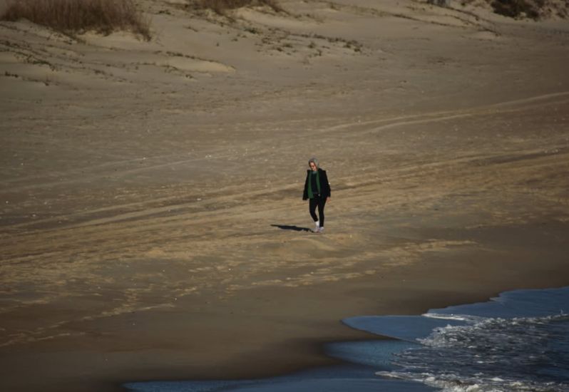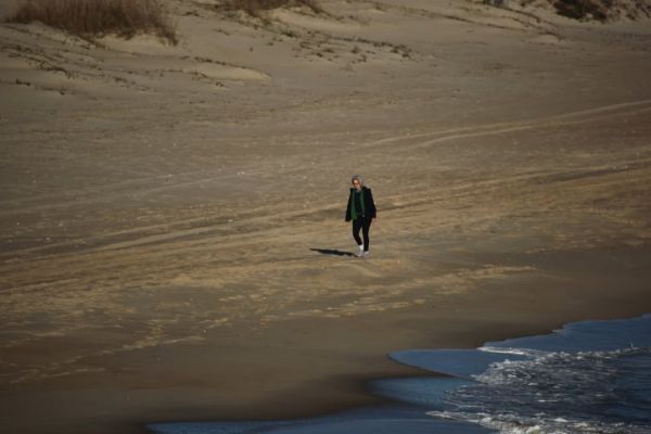 Beach Walk -- Another pretty #sunny day with plenty of BOTTLENOSE #DOLPHIN swimming around the pier. #Ocean temp 50 degrees, ait temp 43 degrees. Winds are West at 5 knots. High tide 8:42 a.m. Low tide 3:06 p.m.
