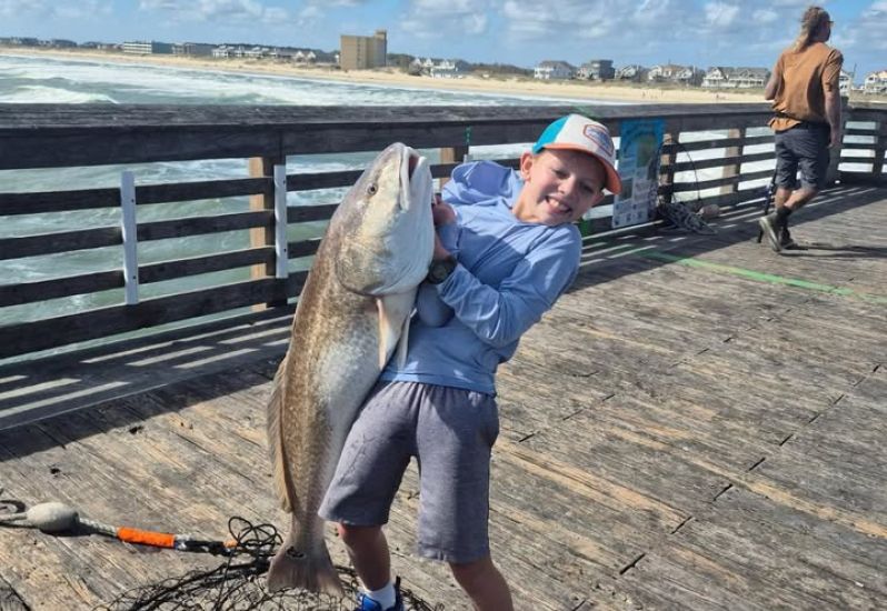 Catch and Release -- Calvin Harries, age 10, of Chambersburg, Pa. just landed this big time RED DRUM at the end of the Pier. Way to go Calvin!