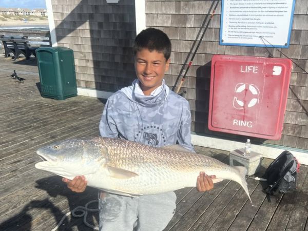 Another Big One -- Sean C., age 13 of Brooklyn, N.Y., caught his first ever big RED DRUM this morning on the end of the pier. His dad said they have been coming down to the "OBX" from Brooklyn for the last three years trying to catch a bull DRUM with no success until this morning. #... See More