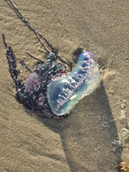 Watch Your Step -- With the red flags flying today indicating no swimming, there's quite a few beach walkers out and about. Keep an eye out for Portuguese man o’ war, a siphonophore that resembles a jellyfish and has a painful sting. They've been seen up and down the beaches.