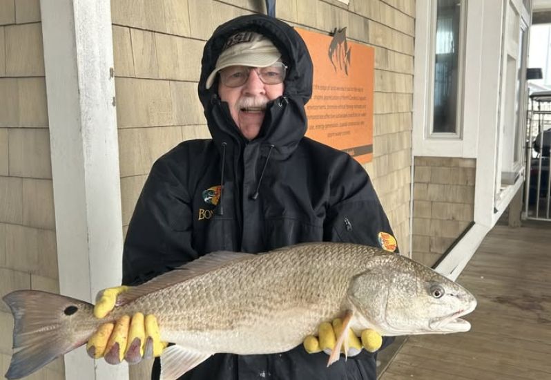 Nice Puppy Drum -- Milton Head caught and kept this 26-inch slot drum this morning while bottom fishing on the pier. (Photo Dustin Sink)