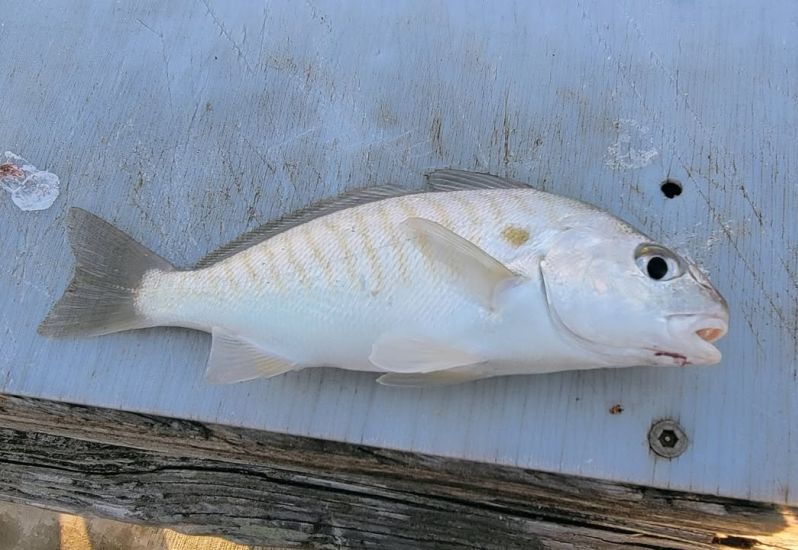 So far, #PUFFERS, #BLUES and #SPOT! Sunny morning with SW winds at 9 knots. Ocean temp 62 degrees, air temp 56 degrees. High tide 6:27 a.m. and 6:50 p.m. Low tide 12:07 p.m.