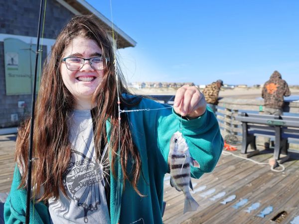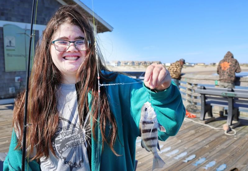 With a big grin, Kelsey Avery, age 15, shows off a nice #black drum she caught and then set free while #fishing on a field trip with the Northeast Regional School of Biotechnology and Agriscience Early College located in #Jamesville on Wednesday.