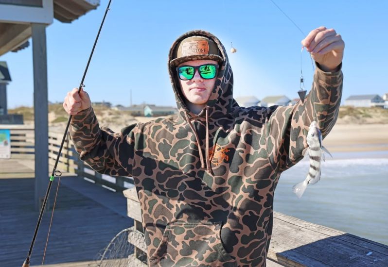 A few small SPECKLED #TROUT, SEA #MULLET and #PUFFERS. Bright sunshine, wind SSE 5 mph. Calm surface conditions, water temp 62. Low tide 2:45 p.m. High tide 8:34 p.m. Trevor Respess, age 15, caught and released this small BLACK #DRUM yesterday.