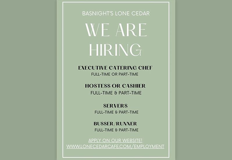 February 11 at 12:25pmNOW HIRING 🎉 Join our team for the 2026 season! Learn More / Apply NowClick here for more posts from Basnight’s Lone Cedar CafeBasnight’s Lone Cedar Cafe 7623 S Virginia Dare TrNags Head(252) 441-5405Website DirectionsCall us