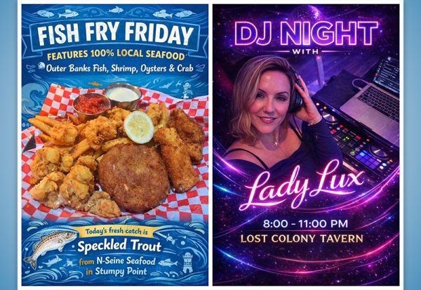 Happy Friday! During the day, join us for FISH FRY FRIDAY from 12:00 noon to 7pm. After dark, dance the night away at DJ Night with LADY LUX!
