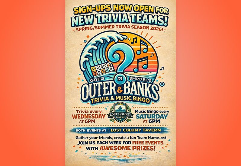 Attention Trivia & Music Bingo fans: There are no April Fools here! This coming Wednesday — April 1, 2026 — we begin the Spring/Summer season of Greg Smrdel’s Outer Banks Trivia & Music Bingo, and we are now taking on NEW TEAMS for these fun & FREE weekly events!