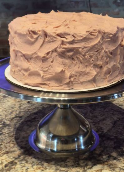 We have been working on a few new cake recipes and are excited to share with you a special cake we are making for Valentine's week! This is our new chocolate Kailua cake with strawberry buttercream. We are using real strawberries in the buttercream - no artificial strawberry flavoring and it's amazing.