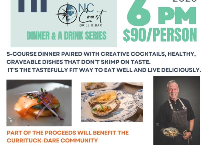 Healthy, flavor-packed dishes. Coastal cocktails. A portion of proceeds supporting the Currituck-Dare Community Foundation.