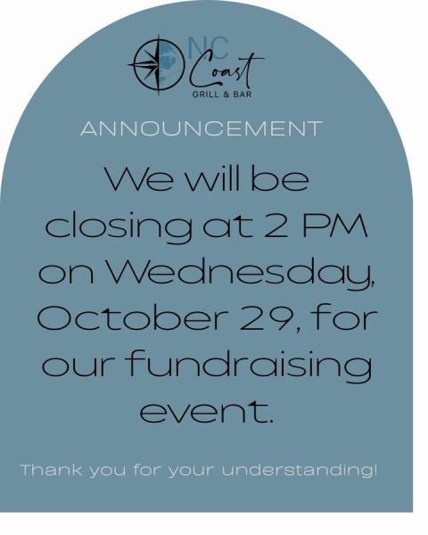 October 27 at 6:06pm via Click here for more posts from NC Coast Grill & BarNC Coast Grill & Bar 1184 Duck RoadKitty Hawk(252) 248-3211Website DirectionsCall us