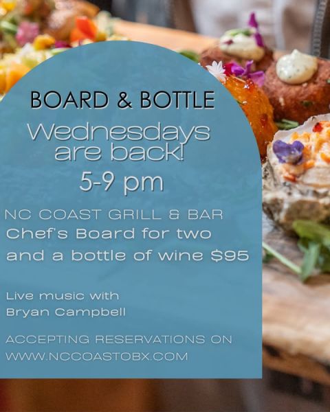 Board & Bottle Wednesdays are back at NC Coast Grill & Bar!