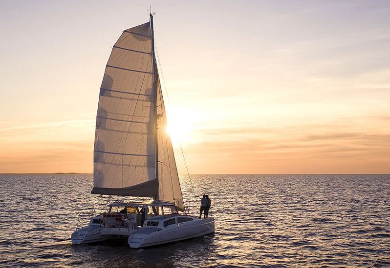 Set sail aboard Surfer Girl, Nor'Banks' luxury 38 ft. catamaran, for an exhilarating sunset cruise on the Currituck Sound in Duck!