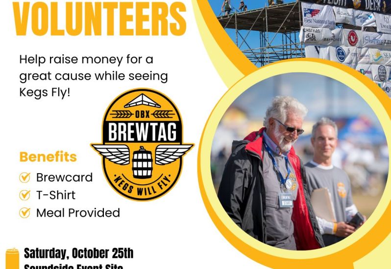 Volunteers needed for the 9th Annual OBX Brewtag! Help celebrate the quirkiest and most high-flying event on the Outer Banks! Enjoy great perks like merch, free beer, and free food in exchange for volunteering your time for a great cause! Learn more at the link below.