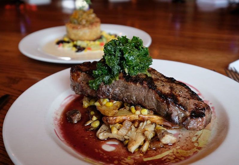Something delicious is on the grill ♨️ New York Strip* Rosemary roasted Potatoes, Cremini Mushrooms, roasted Sweet Corn, Red Onion, Green Beans & Spinach + Horseradish Crème Fraiche .