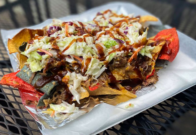 Stay dry and full during the storm and try our BBQ Pork Nachos Smoked Pork, Baked Beans, Slaw, Cheddar Cheese, BBQ Sauce - can't beat it!