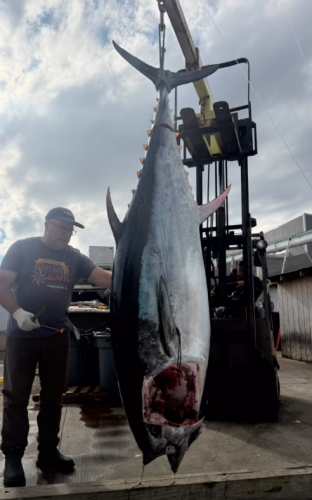 Caught 1/2 mile off the beach 96” and 338 lbs. Up close look at the process when selling your bluefin tuna!! Enjoy!