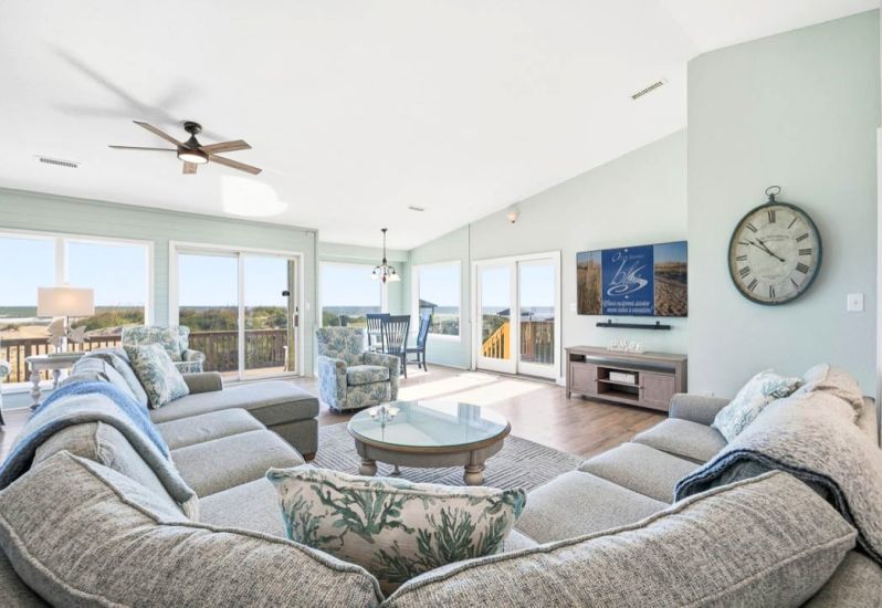 Tide’s A Wastin’ is a unique oceanfront retreat with one of the widest lots in the area, expansive decks, and over 5,400 sq ft of living space designed for multi-family vacations. Featuring eight bedrooms, multiple living areas, a large kitchen, private pool... See More