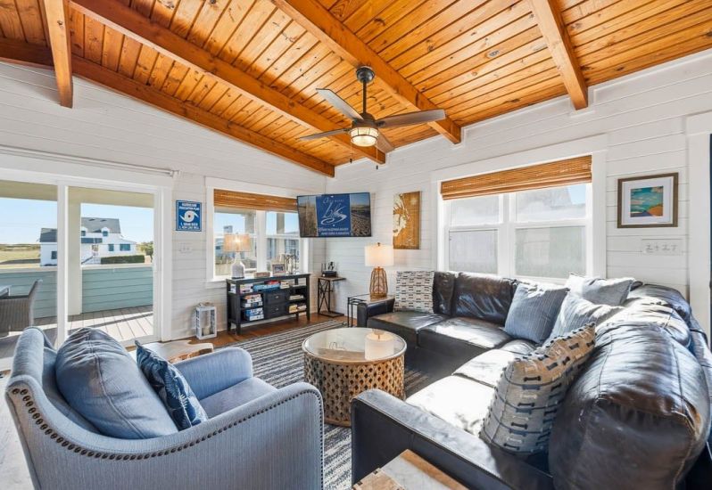 Liv’n Wright is a bright, cozy coastal cottage across the street from the beach that offers stylish décor, a beautiful kitchen, relaxing outdoor spaces, including a screened porch and hot tub, and convenient access to local attractions, perfect for laid-back family gatherings!🌊