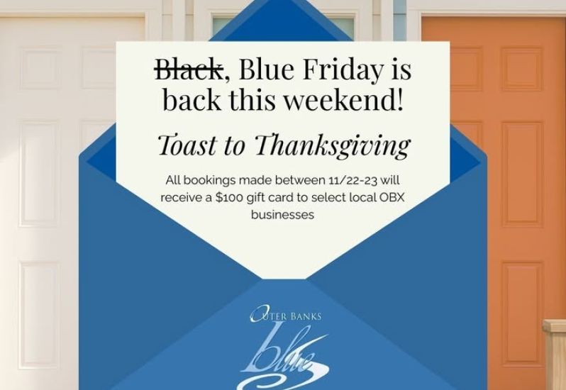 Are you ready for another Play & Stay Blue Friday Countdown Special?! Book a 2026 OBX stay this weekend (11/22–11/23) and you’ll receive a $100 gift card to a local favorite — Barefoot Bernie’s, Red Sky Café, or Food Lion for the week’s essentials.